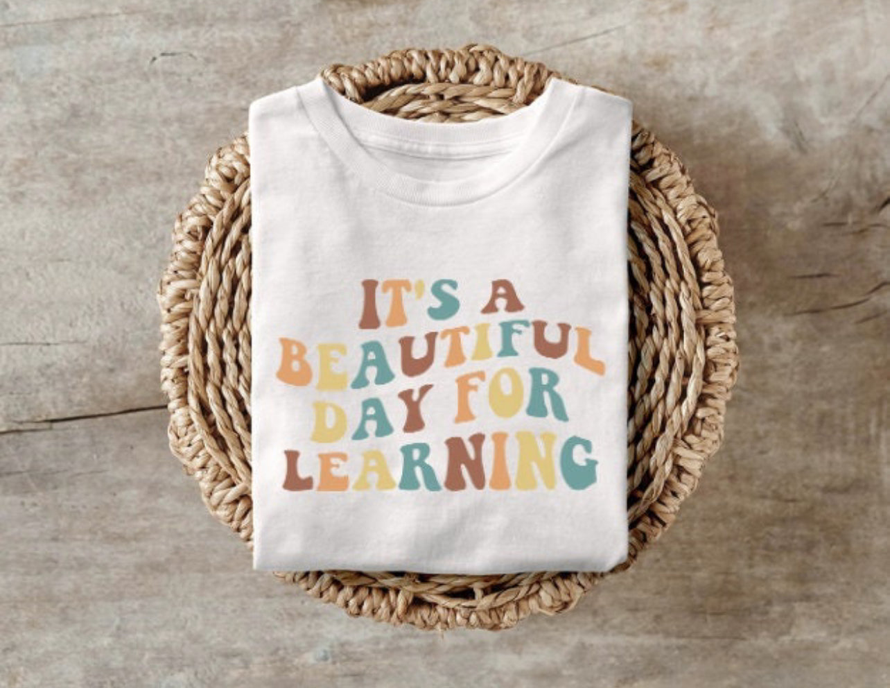$50.00 CADWhite Beautiful day for learning T-shirt (Kids)